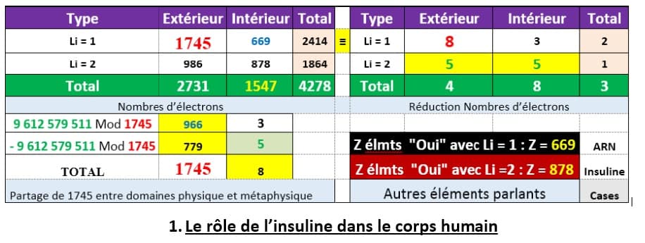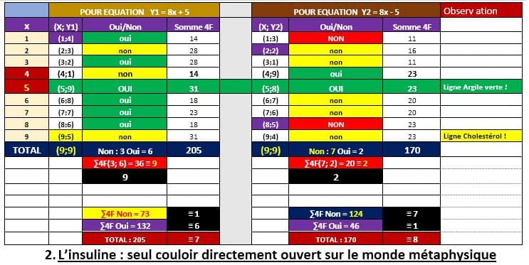 Ainsi, de couple de fréquences (5;8) l’insuline est le seul couloir qui ouvre DIRECTEMENT sur le monde métaphysique. Les tableaux ci-dessous l’expliquent sans ambiguïté !
